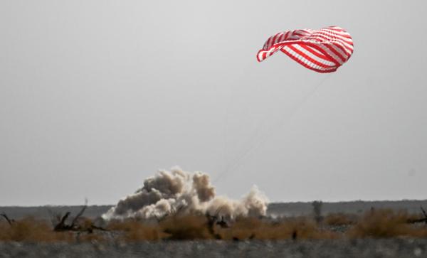 2022年4月16日,神舟十三號載人飛船返回艙在東風(fēng)著(zhù)陸場(chǎng)成功著(zhù)陸。新華社記者 連振 攝