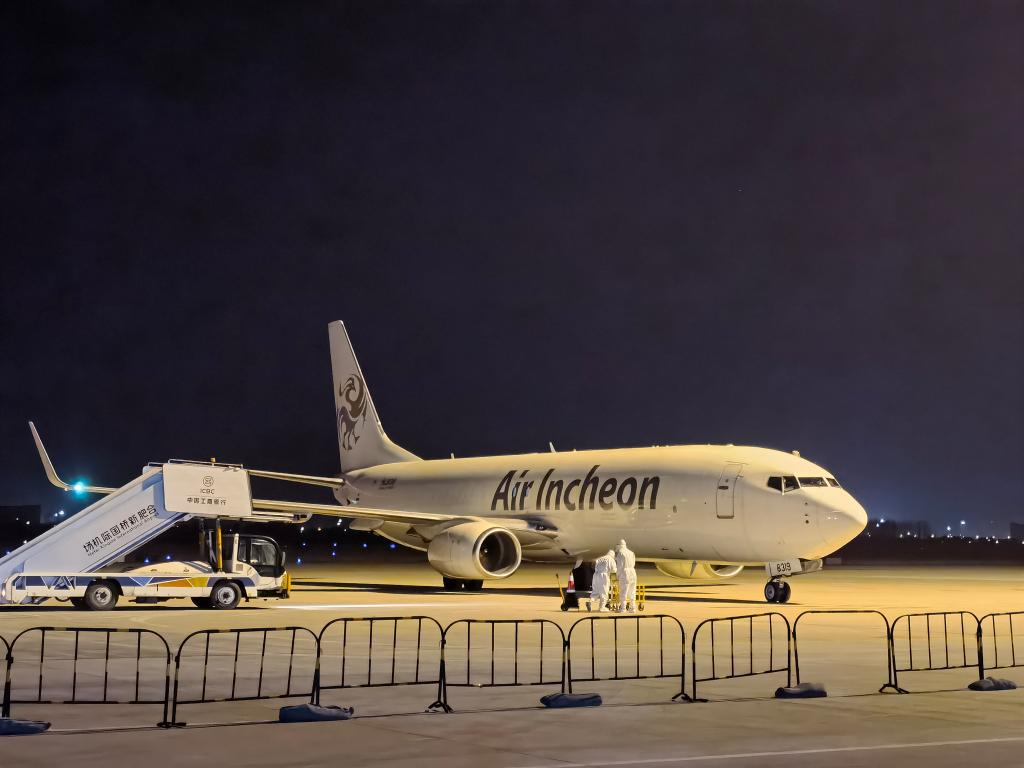4月15日,“大阪-仁川-合肥”聯(lián)程貨運航班到達合肥新橋國際機場(chǎng)。(圖片由受訪(fǎng)對象提供)