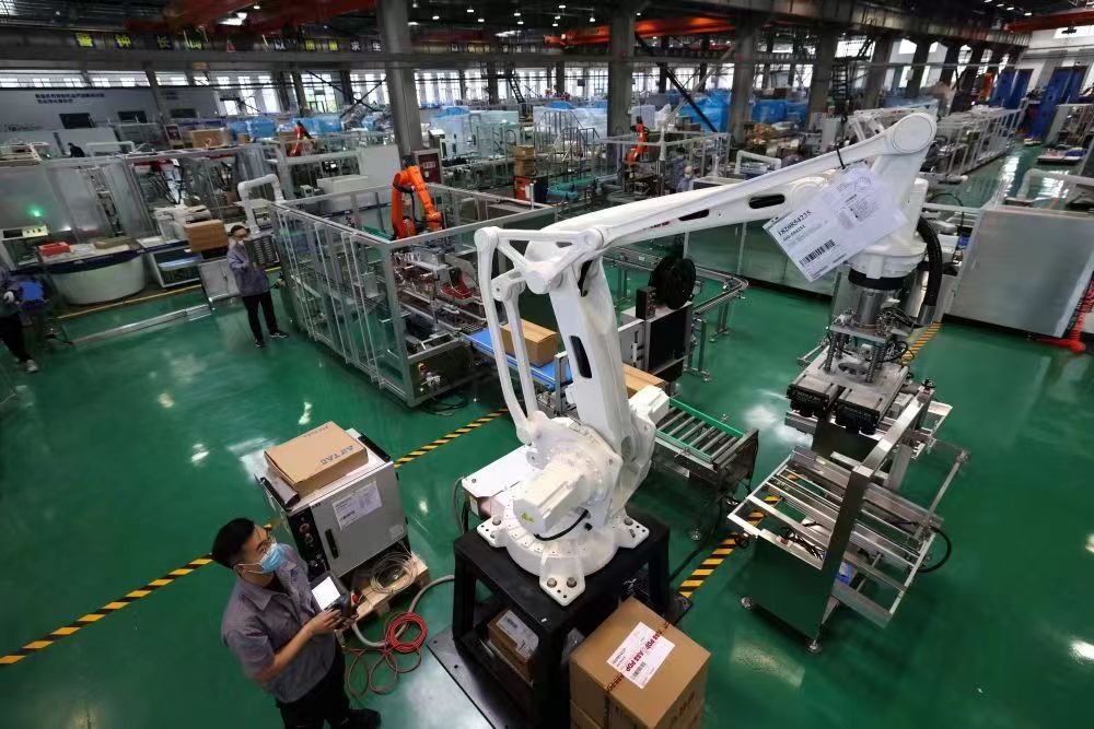 4月13日,合肥哈工龍延智能裝備有限公司工人對智能機器人進(jìn)行功能測試。(圖片由受訪(fǎng)對象提供)