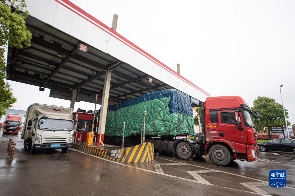 貨車(chē)駛入位于杭州市錢(qián)塘區的杭州傳化公路港(4月13日攝)。新華社記者 江漢 攝