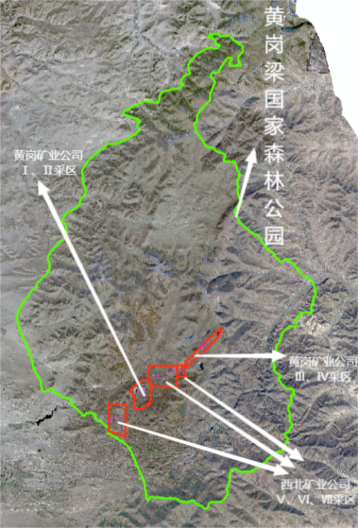 2022年4月2日,督察組調取衛片顯示,黃崗梁鐵礦區兩家企業(yè)7個(gè)采區全部位于黃崗梁國家森林公園內。督察組供圖