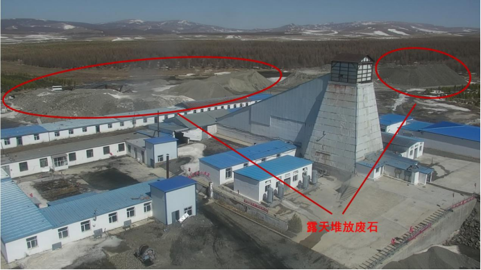 2022年4月3日,督察組使用無(wú)人機拍攝發(fā)現,西北礦業(yè)公司露天堆放廢石,未采取防雨、防揚塵、防流失措施。督察組供圖