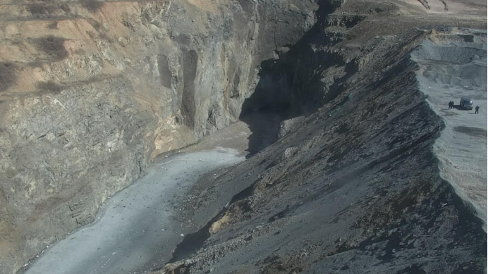 2022年4月3日,督察組使用無(wú)人機拍攝發(fā)現,黃崗礦業(yè)公司Ⅱ1區露天采場(chǎng)生態(tài)修復不到位。督察組供圖