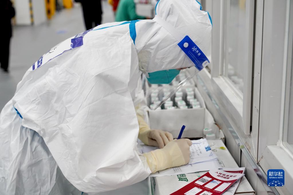 4月30日,在北京市大興區亦莊鎮一核酸采樣點(diǎn),醫護人員為市民進(jìn)行核酸采樣。新華社記者 彭子洋 攝