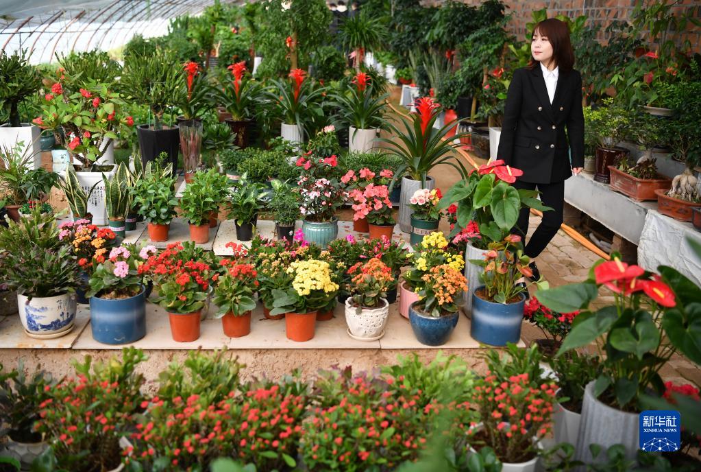 延安市寶塔區河莊坪鎮趙家岸村的花卉大棚(3月30日攝)。新華社記者 邵瑞 攝