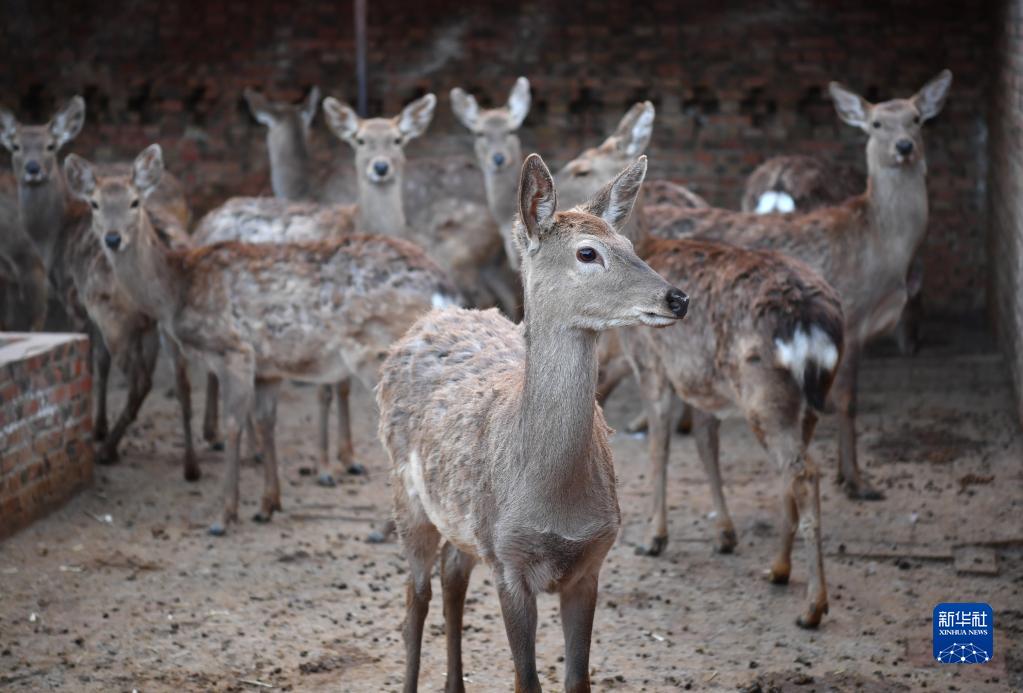 這是趙洋洋在延安市安塞區鐮刀灣鎮羅居村養殖場(chǎng)內養殖的梅花鹿(3月29日攝)。新華社記者 邵瑞 攝