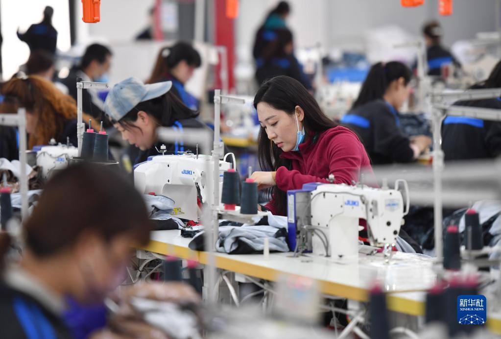 工人在延安市延川縣華延服裝公司車(chē)間內工作(3月31日攝)。新華社記者 邵瑞 攝