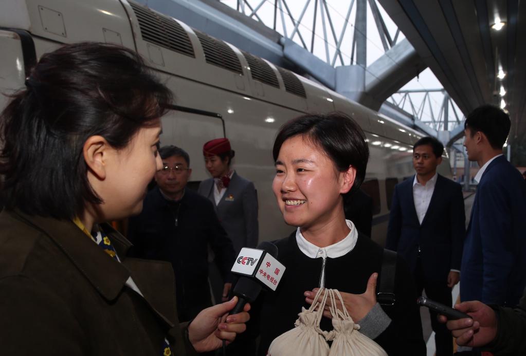 2017年10月15日,作為黨的十九大代表的吳書(shū)香在接受記者采訪(fǎng)。新華社記者金立旺攝