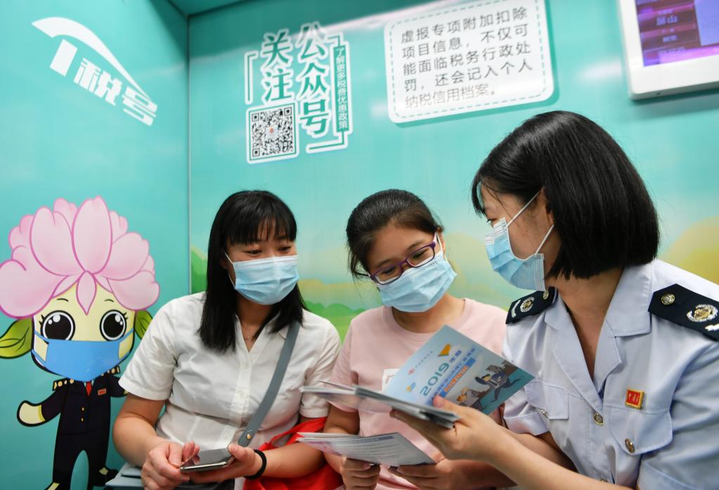 稅務(wù)工作人員向市民宣傳個(gè)人所得稅及年度匯算相關(guān)知識。新華社記者魏培全攝