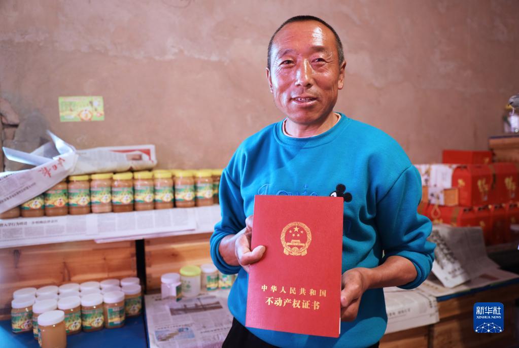 寧夏固原市彭陽(yáng)縣米塬村蜂農米克宗展示山林權不動(dòng)產(chǎn)權證書(shū)(4月20日攝)。新華社記者 盧鷹 攝