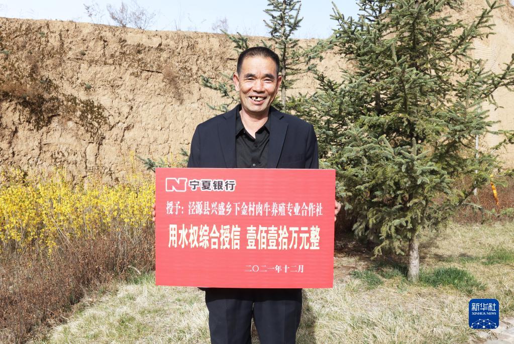 你有林權證,我有水權證。在涇源縣興盛鄉下金村,養牛大戶(hù)于建輝一年肉牛出欄量在800頭左右,對流動(dòng)資金的需求量比較大。往年他用縣城的門(mén)面房、鏟車(chē)等抵押貸款,如今他的抵押物多了一個(gè)用水權證?!坝盟畽噙@個(gè)東西看不見(jiàn)摸不著(zhù),卻能成為一筆資產(chǎn)?!庇辛诉@本用水權證,銀行給于建輝的授信額度增加到110萬(wàn)元。