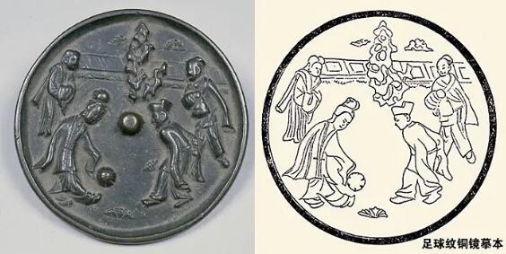 ↑蹴鞠紋銅鏡及其摹本