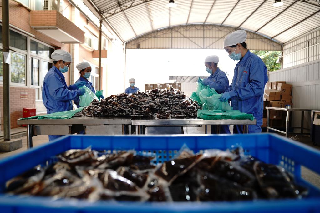 2022年5月1日,上海虹橋中藥飲片有限公司工人對中藥防疫湯劑進(jìn)行包裝。新華社記者 張建松 攝