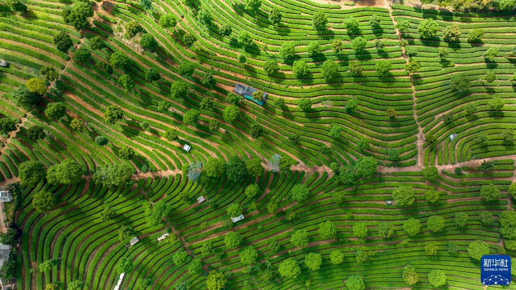 云南普洱市思茅區南屏鎮整碗村的有機茶葉基地(5月13日攝,無(wú)人機照片)。新華社記者江文耀攝