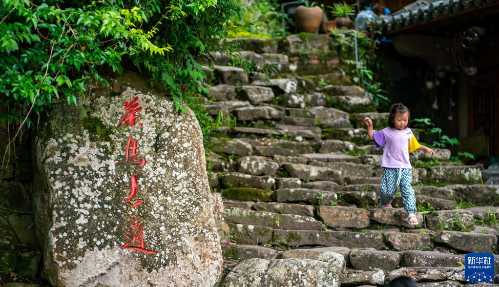 小朋友在云南省寧洱縣那柯里茶馬古道小鎮玩耍(5月14日攝)。新華社記者江文耀攝