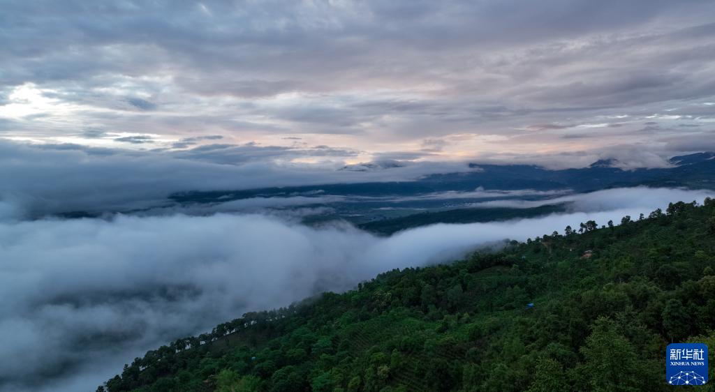 景邁山云海(5月12日攝,無(wú)人機照片)。新華社記者江文耀攝