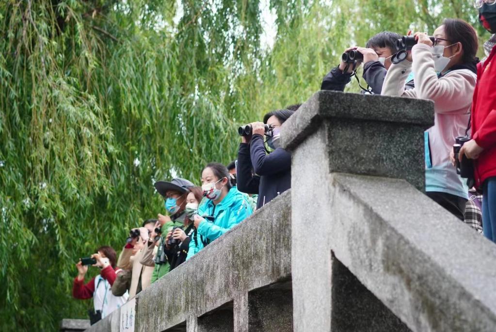 2022年5月17日,在云南省昆明市翠湖公園,李維薇和周修遠帶領(lǐng)市民體驗傳統觀(guān)鳥(niǎo)并介紹AI智能鳥(niǎo)類(lèi)識別系統。(受訪(fǎng)者供圖)