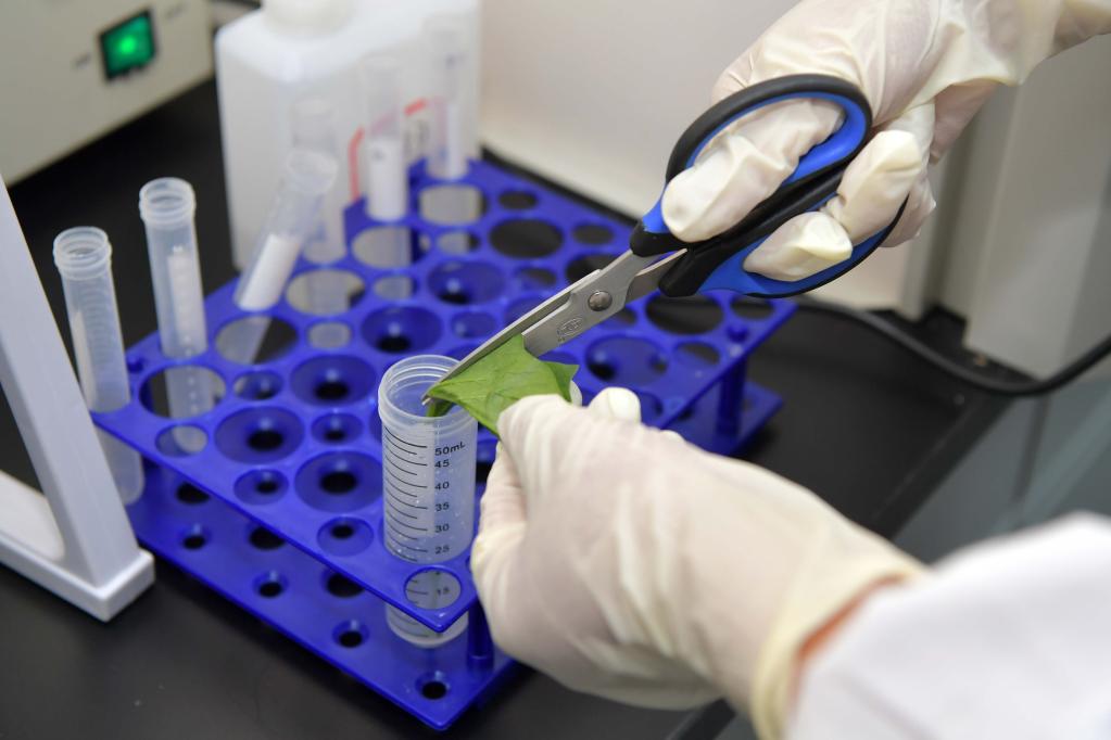 在江西省南昌市東湖區賢士花園農貿市場(chǎng)食品安全快速檢測室,工作人員對市民送檢的蔬菜進(jìn)行取樣。新華社記者彭昭之 攝