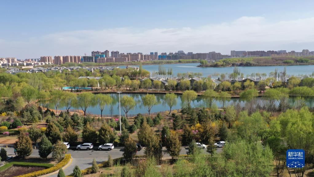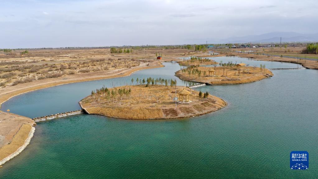 這是甘肅省張掖市甘州區境內的蘆水灣旅游度假區(4月12日攝,無(wú)人機照片)。新華社記者 陳斌 攝