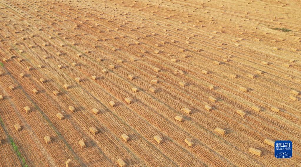這是6月8日在河南省安陽(yáng)市滑縣小鋪鄉界河路村拍攝的打捆的麥秸(無(wú)人機照片)。新華社記者 張浩然 攝