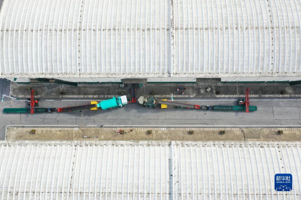 5月24日,在中央儲備糧鄧州直屬庫有限公司內,糧食入庫全套流程設備已架設完畢(無(wú)人機照片)。新華社記者 張浩然 攝
