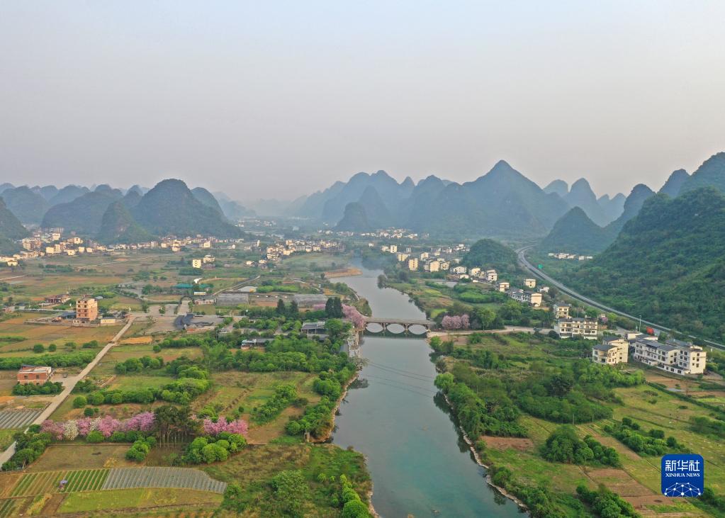 廣西桂林陽(yáng)朔縣境內的漓江支流遇龍河風(fēng)光(4月11日攝,無(wú)人機照片)。新華社記者 周華 攝