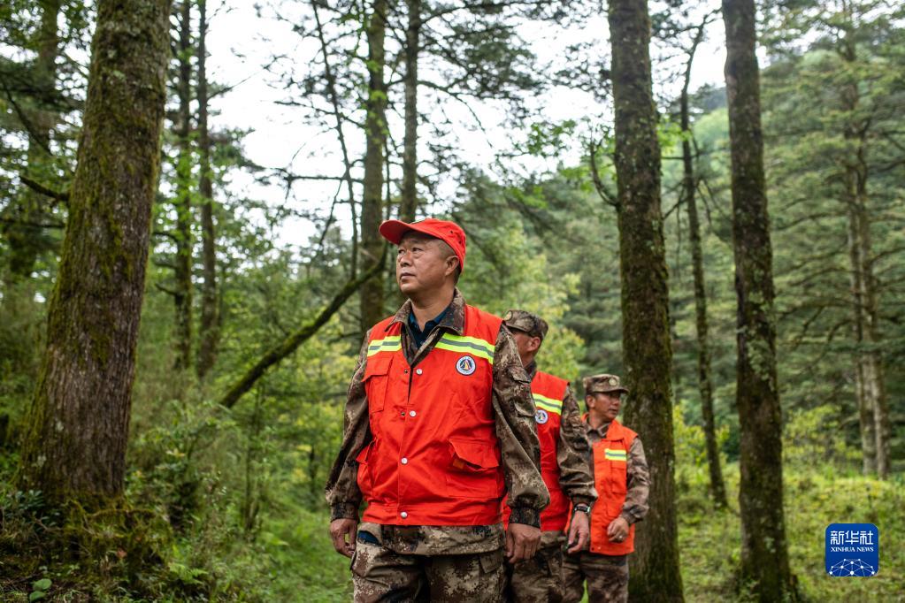 6月2日,護林員崔雙紅(前)在云南省昆明市東川區法者林場(chǎng)巡山護林。新華社記者 胡超 攝