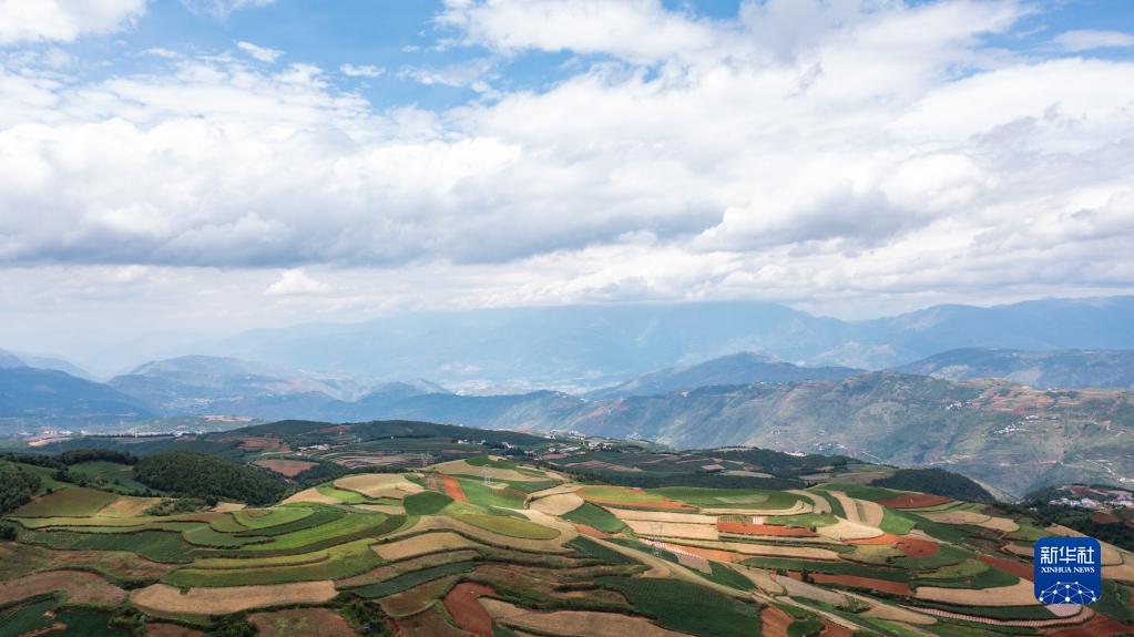 這是東川紅土地一景(6月2日攝,無(wú)人機照片)。新華社記者 胡超 攝