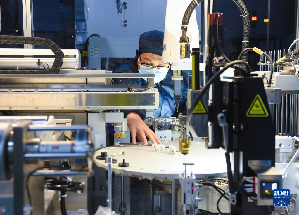 6月15日,在浙江省臺州市仙居縣一家醫療器械公司的生產(chǎn)車(chē)間,工作人員在調試生產(chǎn)線(xiàn)上的一套醫學(xué)實(shí)驗室設備。新華社記者 翁忻旸 攝