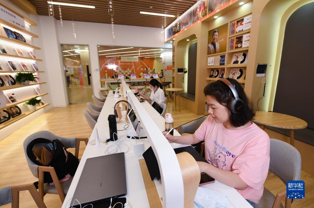 6月2日,在浙江省杭州市余杭區葛巷未來(lái)社區文化家園,居民在有聲圖書(shū)館內學(xué)習。新華社記者 翁忻旸 攝