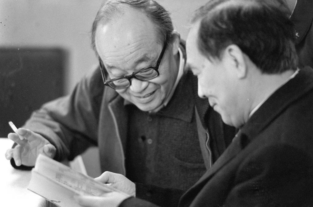 這是喬羽(左)在閱讀演唱會(huì )上的歌詞。新華社記者 楊飛 攝(1989年1月20日發(fā))