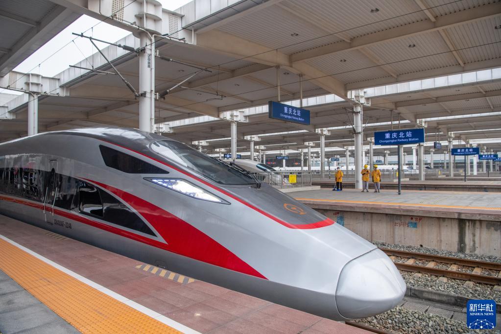 2022年6月20日,鄭渝高鐵重慶首發(fā)G52次列車(chē)從重慶北站發(fā)車(chē)。新華社記者 唐奕 攝