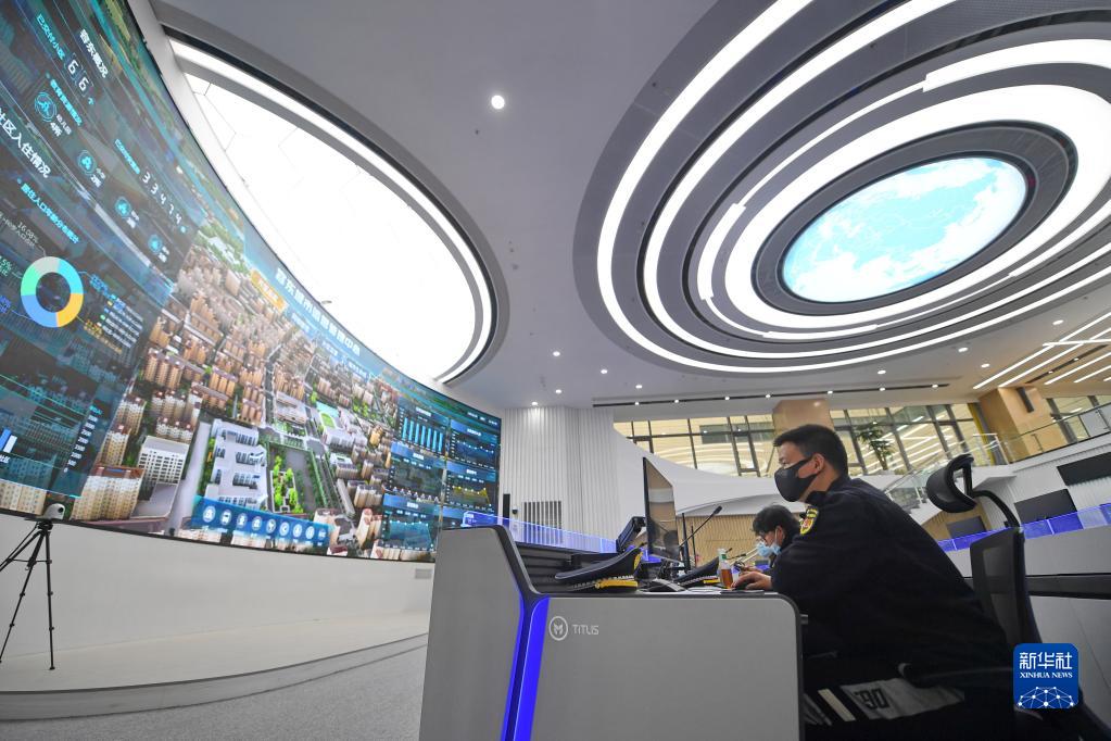 工作人員在雄安新區容東城市運營(yíng)管理中心監管平臺工作(2022年3月29日攝)。新華社記者 朱旭東 攝