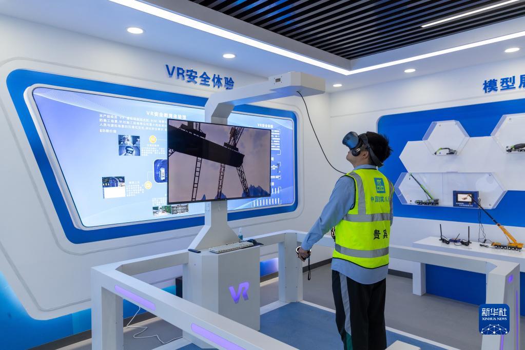 工作人員在雄安新區一智慧工地展示廳進(jìn)行工地VR安全體驗(2022年4月13日攝)。新華社發(fā)(高盟 攝)