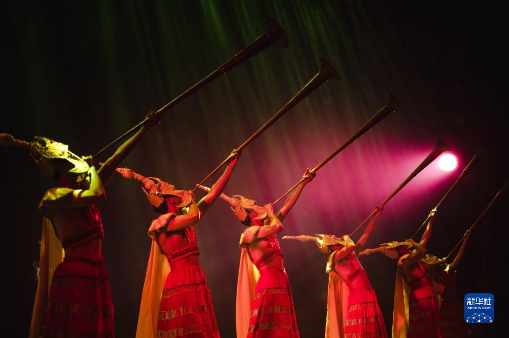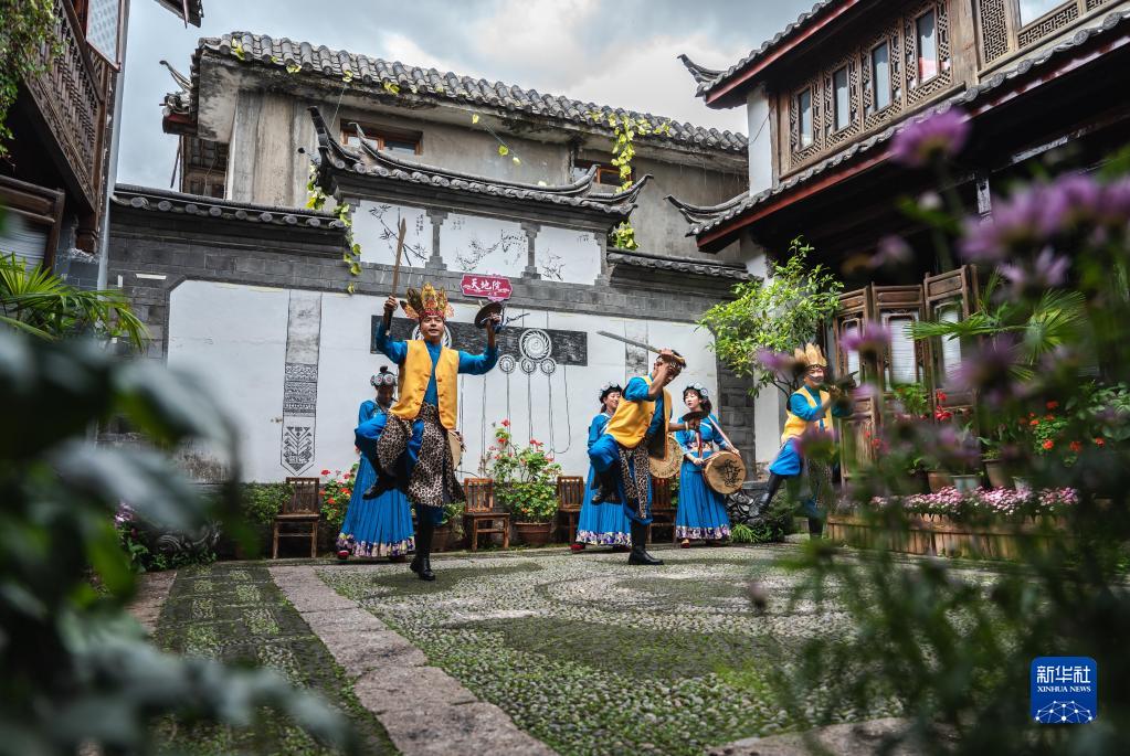 演員在天地院內表演納西歌舞(2022年6月9日攝)。新華社記者 王冠森 攝