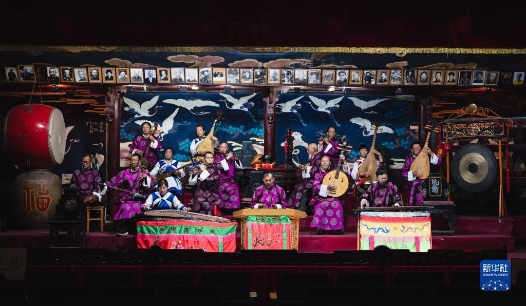 藝人在麗江古城大研納西古樂(lè )會(huì )表演納西古樂(lè )(2022年6月10日攝)。新華社記者 王冠森 攝