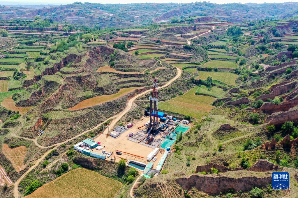 這是在山西省長(cháng)治市武鄉縣拍攝的一處煤層氣鉆井現場(chǎng)(無(wú)人機照片,2021年6月22日攝)。新華社記者 曹陽(yáng) 攝