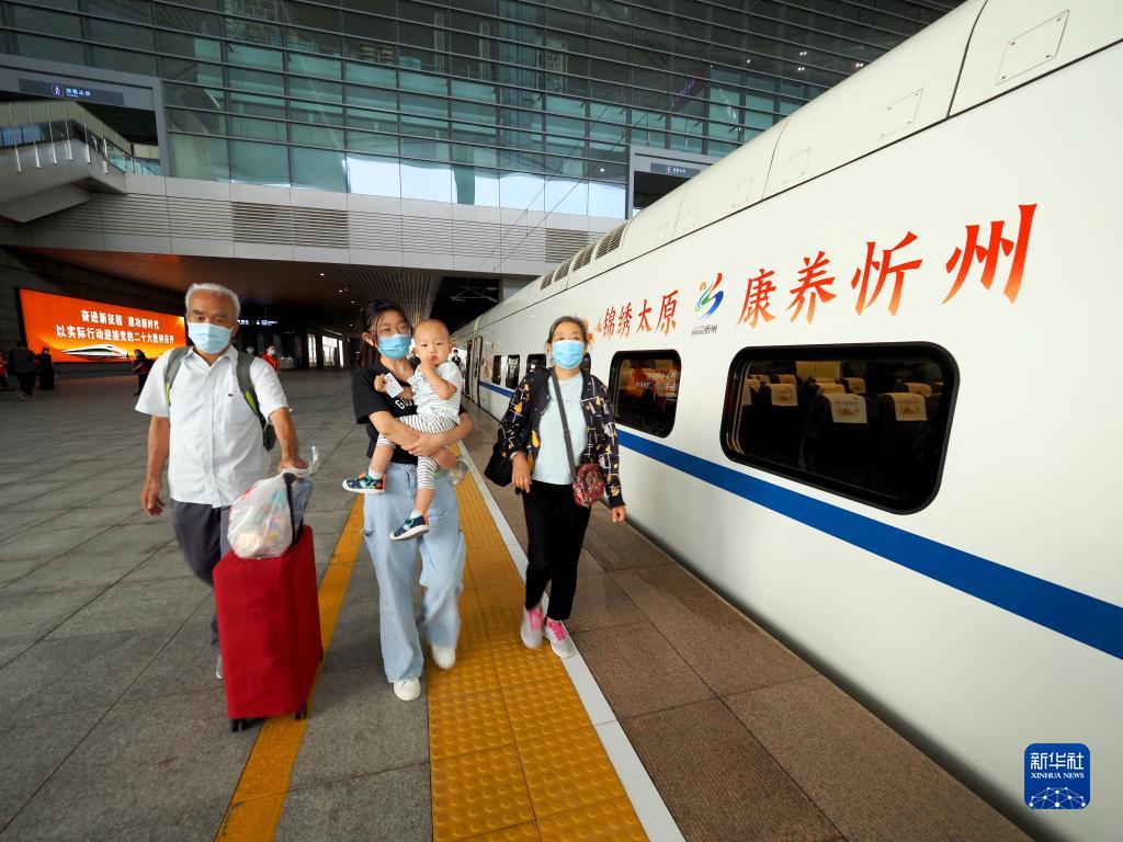 乘客在山西太原南站準備乘坐D5306次動(dòng)車(chē)組列車(chē)(2022年7月4日攝)。新華社發(fā)(張炯攝)