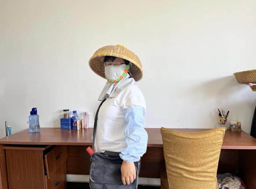 上午10點(diǎn),熱浪洶涌,水稻田里已經(jīng)燙得無(wú)法下腳?;氐绞覂?,周紅英滿(mǎn)身的泥土,身體冒著(zhù)熱氣。盡管全副武裝,包裹嚴實(shí),她的臉還是被曬得黑里透紅?!傲骱固?,防曬霜被洗掉了?!?/p>