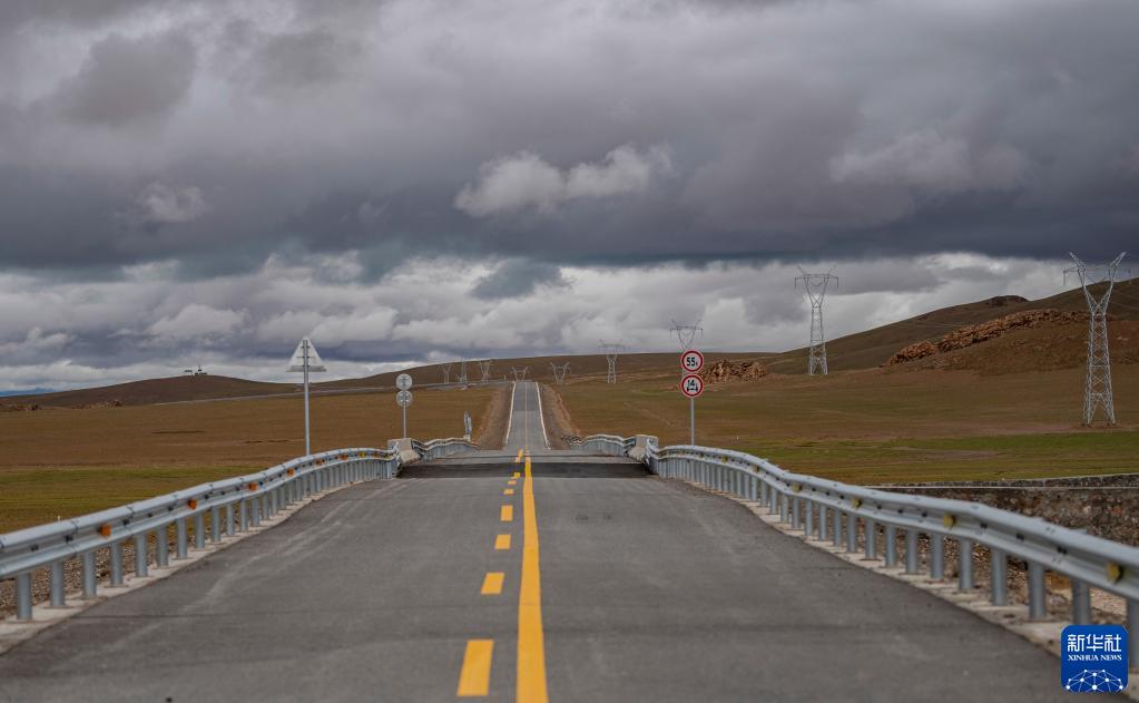 這是雙湖縣境內的公路和電網(wǎng)(7月14日攝)。新華社記者 晉美多吉 攝