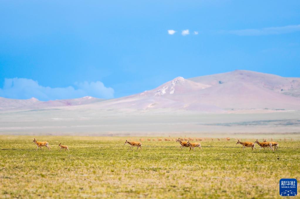 在雙湖縣境內拍攝的藏羚羊(7月11日攝)。新華社記者 周荻瀟 攝