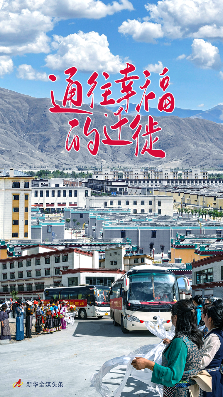 一陣陣激昂的藏戲鼓聲、一聲聲“歡迎到家”的美好祝福,當地群眾手舉象征五谷豐登的“切瑪盒”,逐一獻上哈達,迎接新鄰居。