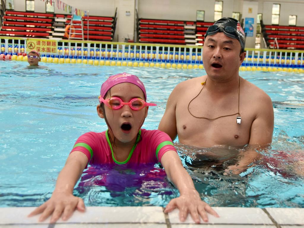 ↑陜西省山陽(yáng)縣為縣城中小學(xué)生提供免費游泳教學(xué)