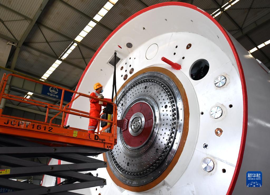 工人在位于河南省鄭州市的中鐵工程裝備集團盾構機總裝車(chē)間作業(yè)(2020年3月18日攝)。新華社記者 李嘉南 攝