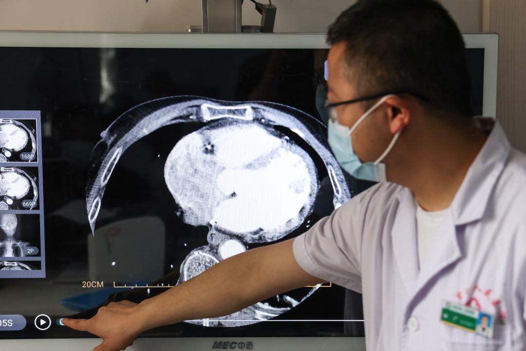 6月7日,貴州省龍里縣人民醫院呼吸科主任田廣通過(guò)遠程診斷系統查看患者的醫學(xué)影像資料。新華社記者 歐東衢 攝