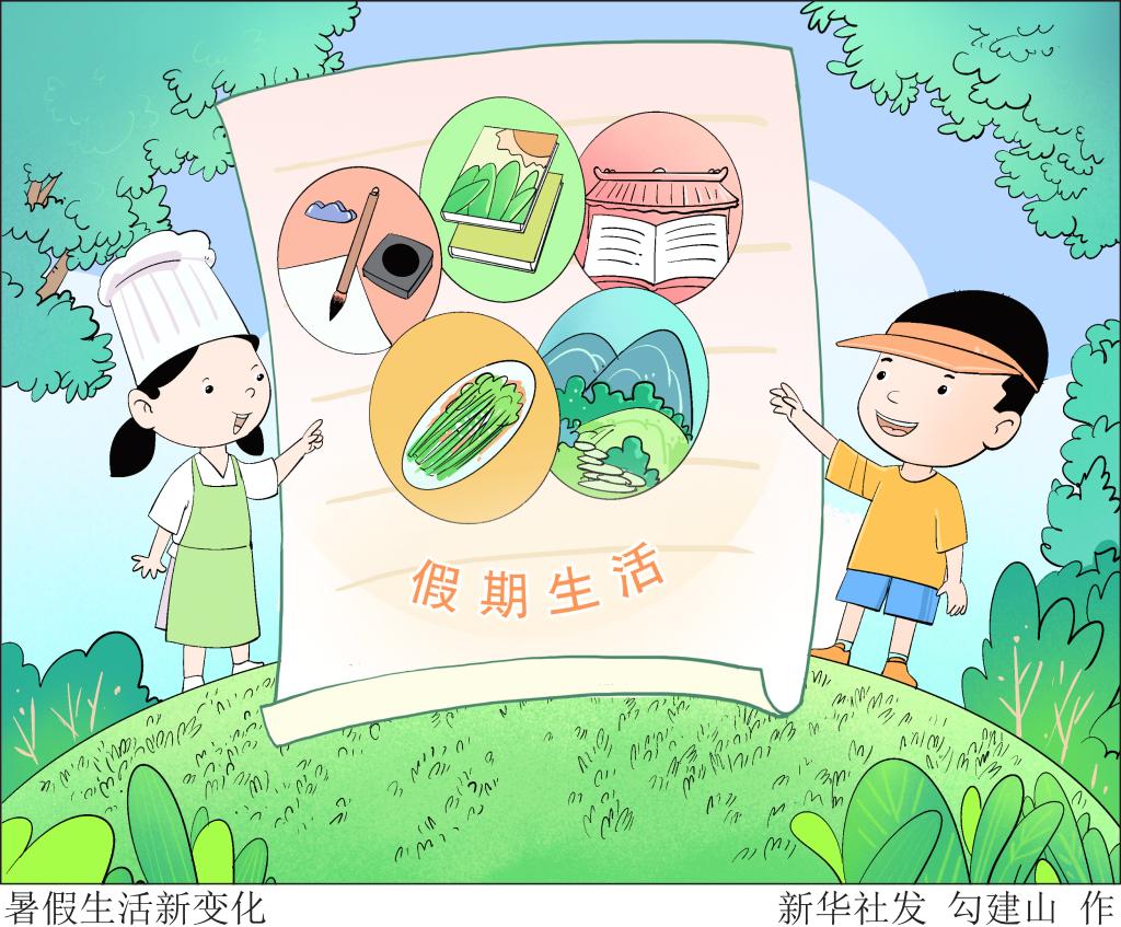 這個(gè)暑假,江蘇省阜寧縣明達初級中學(xué)七年級3班的肖夢(mèng)瑤同學(xué)參加了該縣教育局組織的“悅讀書(shū)房”“思政大講堂”等活動(dòng)。她沒(méi)有奔波于各類(lèi)補習機構,也沒(méi)有沉浸在“題?!?,而是在多元實(shí)踐中,經(jīng)歷更多彩的暑假生活。