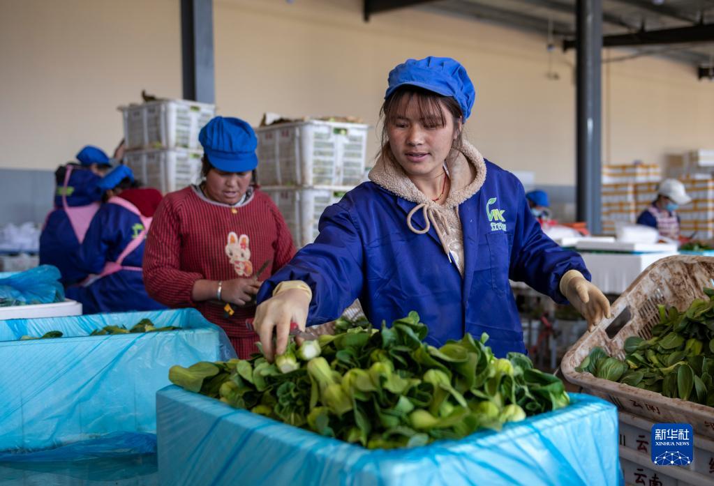 脫貧群眾在云南省曲靖市會(huì )澤縣一蔬菜冷鏈企業(yè)分揀蔬菜(2022年3月3日攝)。新華社記者 陳欣波 攝