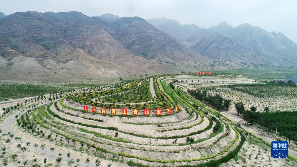 位于寧夏石嘴山市平羅縣崇崗鎮的賀蘭山東麓黃屯子生態(tài)修復治理工程(2022年8月2日攝)。新華社記者 王鵬 攝