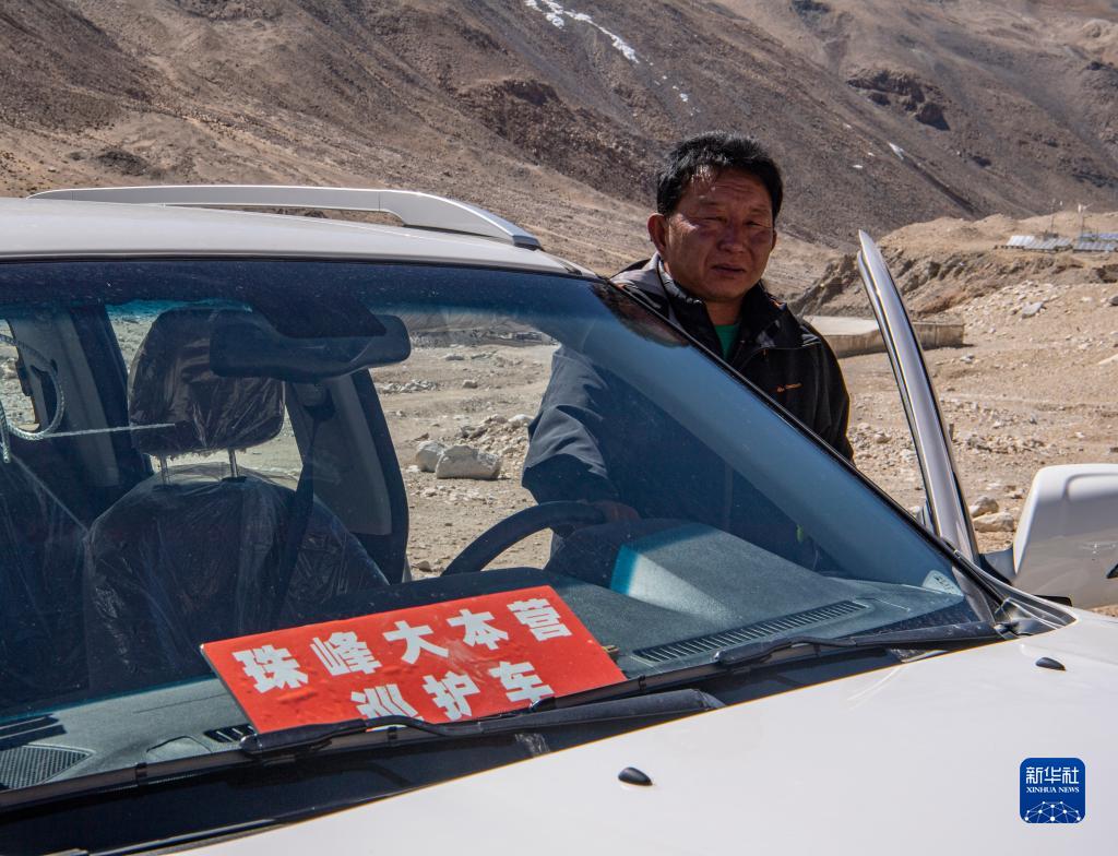 拉巴次仁駕駛巡護車(chē)在珠穆朗瑪峰國家級自然保護區內巡邏(2020年5月15日攝)。新華社記者 孫非 攝