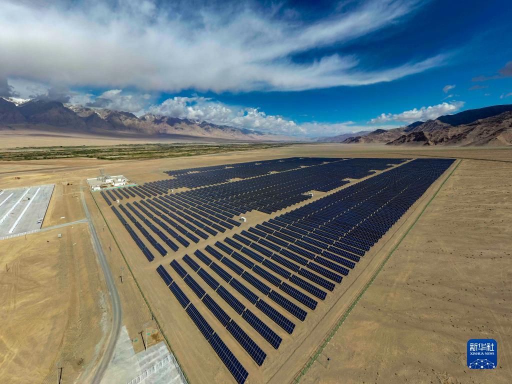 這是深圳援建的新疆塔什庫爾干塔吉克自治縣2萬(wàn)千瓦太陽(yáng)能光伏扶貧電站(無(wú)人機照片,2020年6月15日攝)。新華社記者 胡虎虎 攝